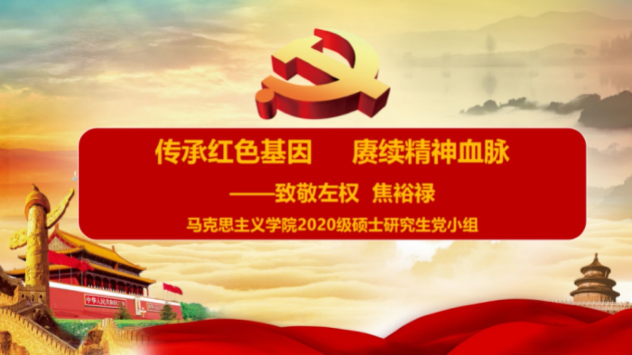 本次学习活动在雄壮的国歌声中拉开帷幕,赵圆庆、宋宇轩两位同志朗诵了习近平总书记所作的《念奴娇·追思焦裕禄》以及朱德悼念左权的诗,向左权和焦裕禄同志致敬;共同观看了《把泪焦桐成雨》、《热血卫吾华》的学习视频,回顾了焦裕禄、左权同志的光辉事迹。学习活动最后,全体党员齐唱《唱支山歌给党听》、《不忘初心》,为党的百年华诞献礼。