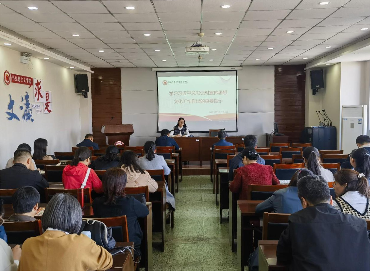 10月13日下午,yl23411永利官网召开政治理论学习会,专题学习习近平总书记对宣传思想文化工作作出的重要指示。公司党委书记王利花主持会议,全体教职工参加会议。