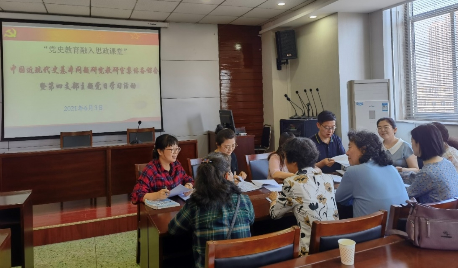 2021年6月3日上午,公司第四党支部暨中国近现代史基本问题研究教研室全体教师围绕“党史融入思政课堂”这一主题开展集体备课,总结本学期党史融入《中国近现代史纲要》课程教学的实践经验。