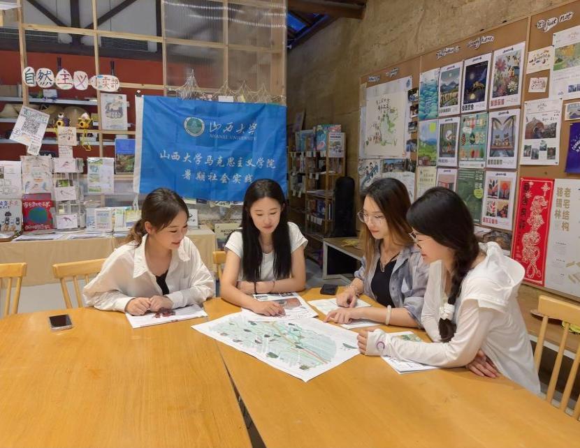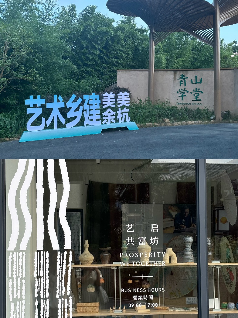 首先,实践团一行来到全国首个未来乡村实验区——杭州市余杭区青山村,先后考察了龙坞水库、青山自然公司、青山青年社·龙坞里、融设计图书馆、艺启共富工坊等地,实地感受了青山村在新老村民的众创共治下走出的一条以“自然保护+生态旅游”、“传统手工艺+文创”和“研学教育+团建服务”为特色的乡村共同富裕之路。