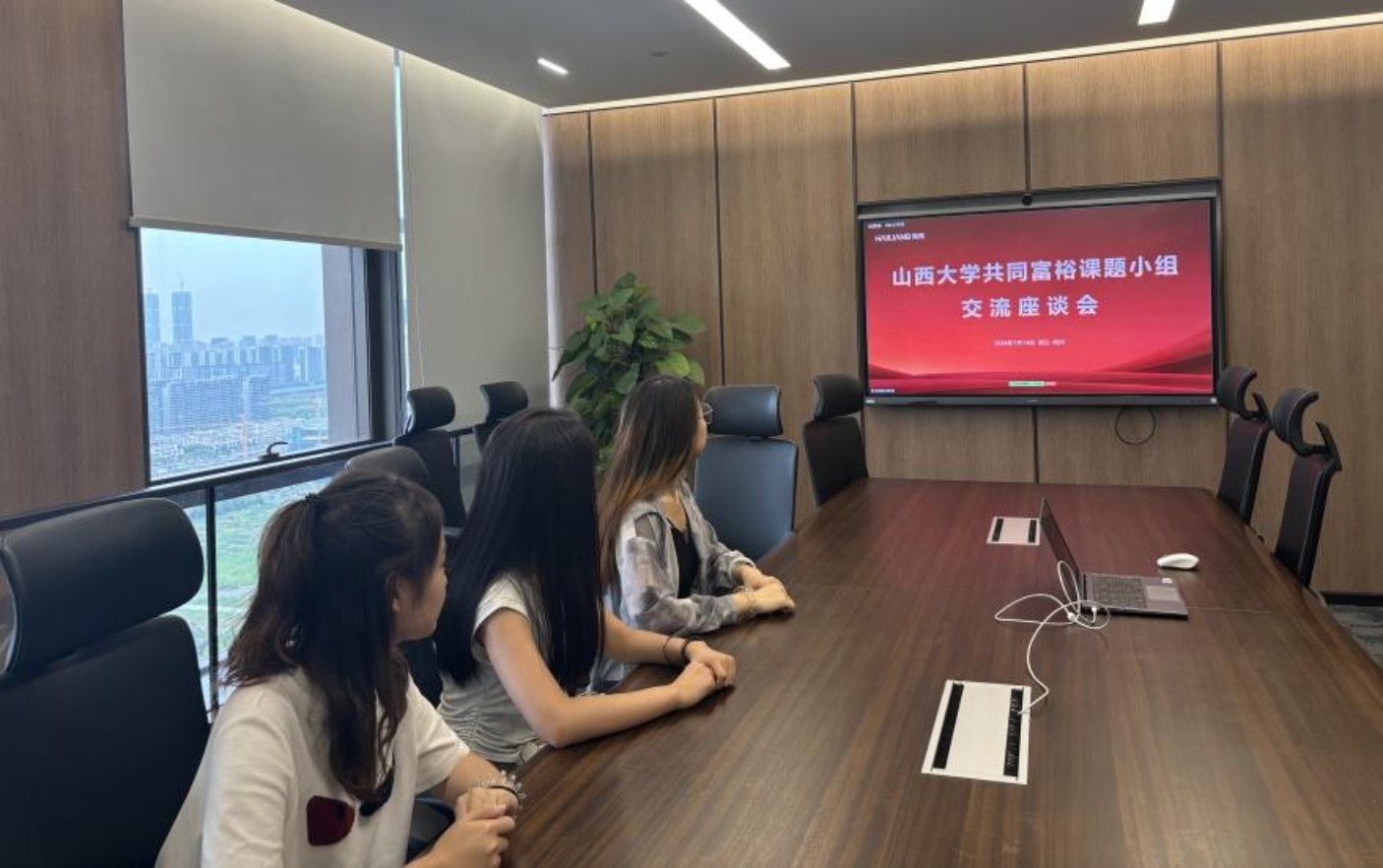座谈会上,海亮集团相关负责人向实践团一行详细介绍了集团参与乡村振兴和共同富裕的具体实践和成功经验。海亮集团以“教育+农业”的双引擎模式,通过打造“乡村教育事业振兴共同体”和“乡村农业产业振兴共同体”,在推动乡村经济、文化、教育等多方面的发展上持续发力,开创了一条富有“海亮”特色的乡村振兴新路径,让同学们受益匪浅。