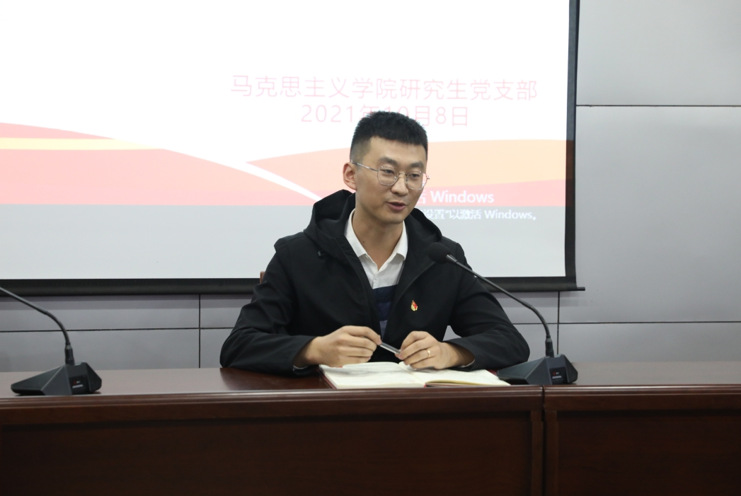 会上宣布增补武泽馨、郝向宇、邢阳三位同志为研究生党支部支部委员,正式吸纳26名2021级研究生新党员加入党支部。