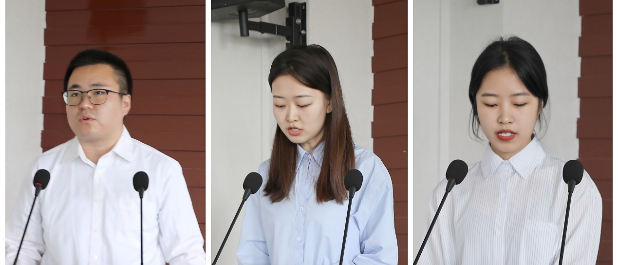 新一届研究生会主席张泽琨、青协主席张文静、研究生宣讲团团长范诗义依次进行发言。他们对上一届团学组织负责人的耐心指导表示衷心感谢,各自分享了新学期的工作思路和想法,表达了更好引领和服务全院员工的信心和决心,表示将不负众望,努力讲好马院故事、不断彰显马院风采,为公司的全面发展贡献青春力量。