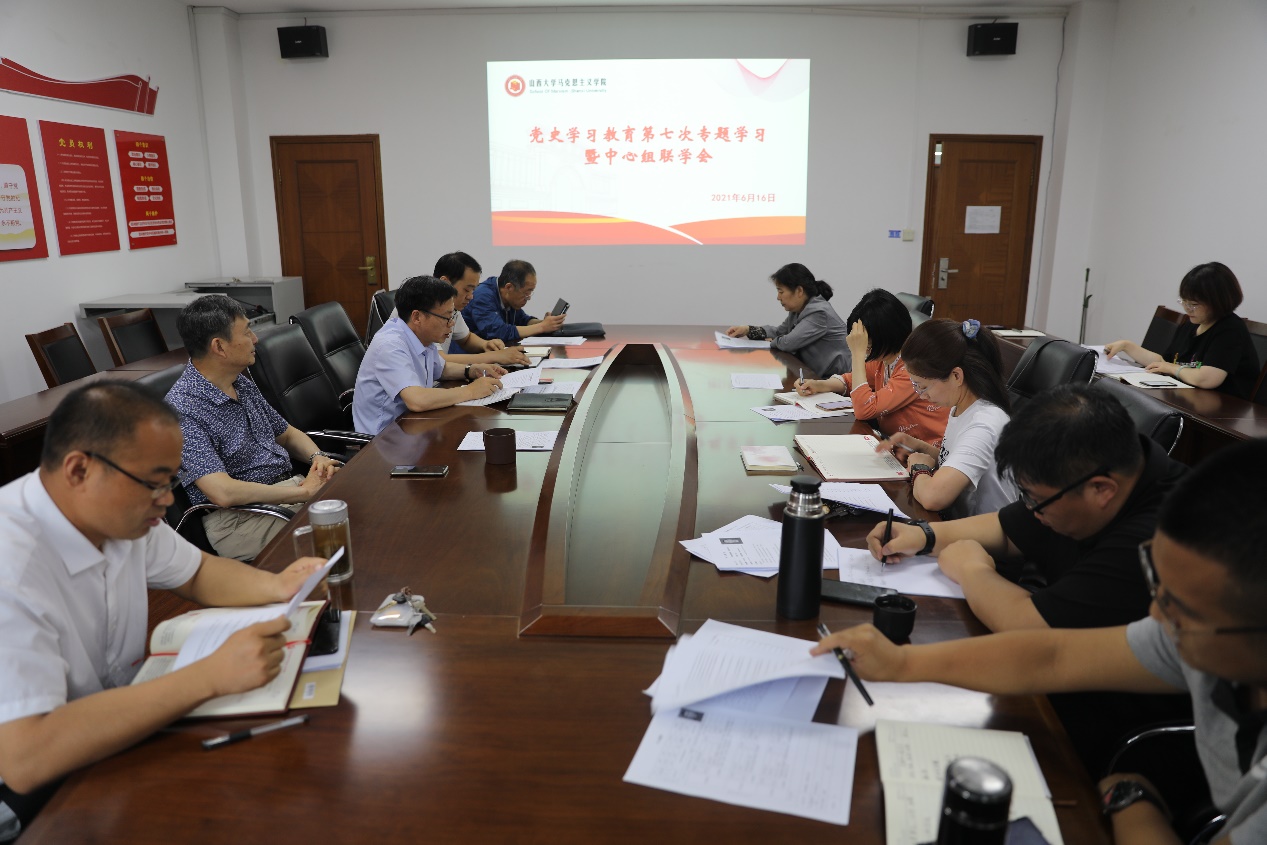 会上重点学习了《习近平新时代中国特色社会主义思想学习问答》、习近平总书记《用好红色资源,传承好红色基因,把红色江山世世代代传下去》(《求是》2021年第10期)、习近平总书记在两院院士大会中国科协第十次全国代表大会上的重要讲话精神、习近平总书记在中共中央政治局第三十次集体学习时的重要讲话精神、习近平总书记在全球健康峰会上的重要讲话精神、习近平总书记给《文史哲》编辑部的回信、习近平总书记在青海考察期间的重要讲话精神、《中国共产党组织工作条例》、2021年新修订的《中华人民共和国教育法》以及中共中央办公厅印发《关于在全社会开展党史、新中国史、改革开放史、社会主义发展史宣传教育的通知》。