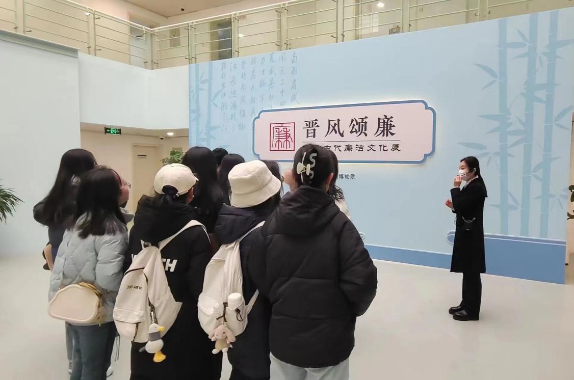 “晋风颂廉——山西古代廉洁文化展”充分挖掘山西博物院馆藏文物资源中所蕴含的廉洁元素,以典明志、以物说廉,弘扬崇廉尚洁的时代精神。团学组织骨干在专业讲解员的引导下,先后参观了“史鉴清廉”、“清官廉吏”和“穆如清风”三个主题展区,了解了山西廉洁文化的起源,聆听了有影响力的清官廉吏故事,学习了诗词书画中的廉洁思想精神。同学们不时驻足仔细观看,认真思考,深刻感悟廉洁文化穿越历史长河的厚重。