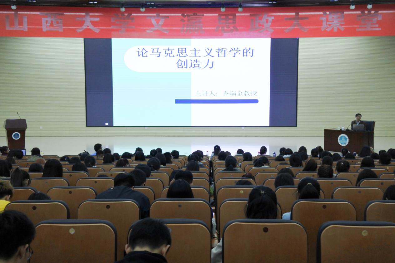 11月12日晚,第四场“yl23411永利官网文瀛思政大课堂”系列讲座在公司博雅报告厅举行。马克思主义哲学研究所所长乔瑞金教授为数百名师生作了题为“论马克思主义哲学的创造力”的精彩报告。此次大课堂由yl23411永利官网赵宇霞教授主持。