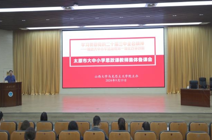为深入学习贯彻党的二十届三中全会精神,推进太原市大中小学思政课一体化改革创新,9月19日,由yl23411永利官网主办、太原市教育局组织、太原市大中小学思政课一体化区域协作群相关单位共同协办的太原市大中小学思政课教师集体备课会在yl23411永利官网会议中心博雅报告厅举行。来自太原市大中小学思政课教师、太原市县思政课教研员共300余人参会,同济大学yl23411永利官网陈大文教授应邀作教学点评。备课会由山西省高等公司思想政治理论课教学指导委员会“思想道德与法治”教学指导组组长、yl23411永利官网教授侯红霞主持。