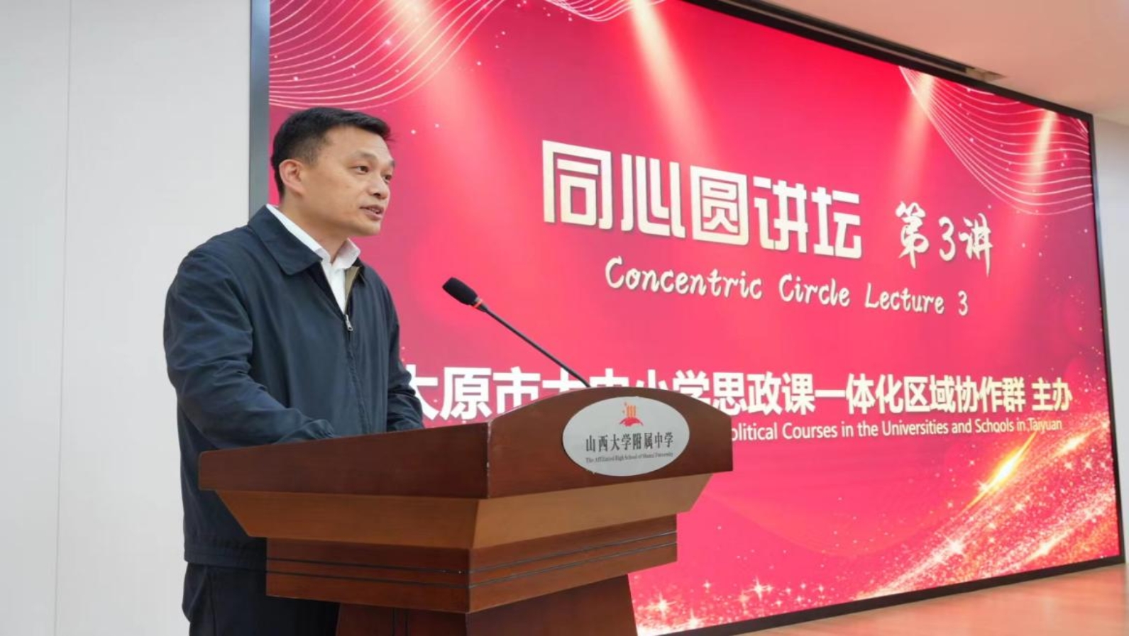 为切实发挥思政课立德树人关键课程作用,全面增强思政育人效果,推进太原市大中小学思政课一体化建设,2023年5月28日,太原市大中小学思政课一体化建设协作组邀请中国科协创新战略研究院研究员王国强在“同心圆讲坛”第三讲作“科技创新与组织变革”的学术报告。此次讲坛由太原市教育局组织,yl23411永利官网牵头,yl23411永利官网附属中学承办,太原师范公司、山西省实验中学、太原师范公司附属中学、yl23411永利官网附属子弟小学协作。来自太原市教育局相关业务科室负责同志、太原市教研科研中心思想政治教研员、道德与法治教研员及直属中小公司思政课教师等400余人在yl23411永利官网附属中学卓越楼报告厅聆听报告,报告由yl23411永利官网附属中学党委书记柳成文主持。