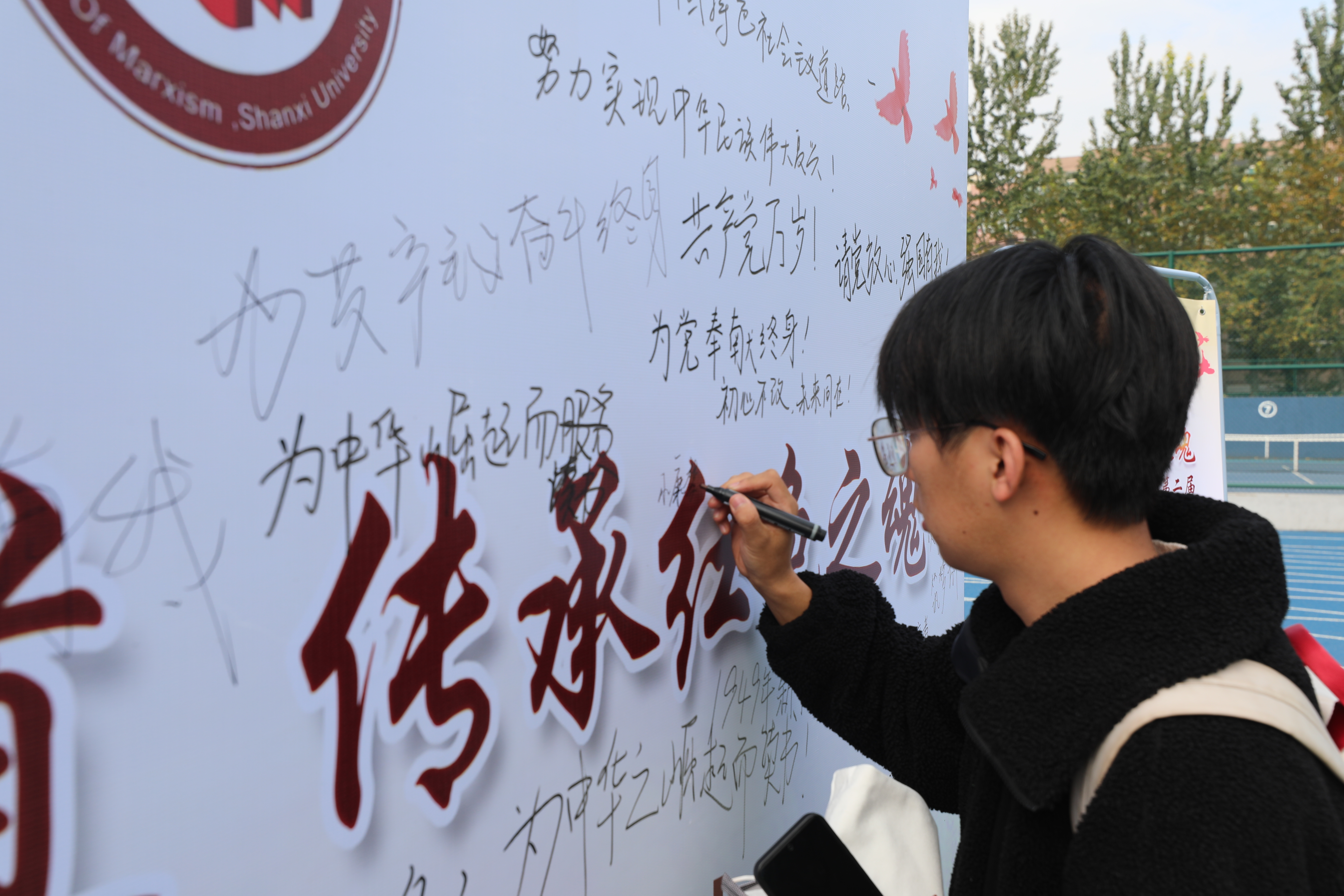 在分享交流环节,同学们将自己对马克思主义中国化时代化理论的认识,以及对党和祖国的深情祝福写在留言板上。大家纷纷表示,这样兼具知识性和趣味性的活动不仅充分调动了同学们学习马克思主义理论和红色文化的积极性,也更加坚定了大家赓续红色血脉、传承红色基因的决心。