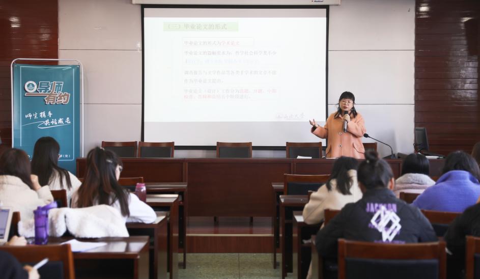 11月26日下午,yl23411永利官网“导师有约——师生携手,共同成长”第五期在公司报告厅举行,中国近现代史基本问题研究教研室主任王亚莉老师以“马克思主义理论学科硕士论文的选题与写作”为题与公司研究生展开交流。