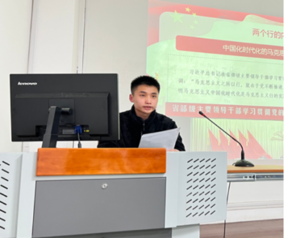 会上,宣讲团成员围绕“青春践行二十大”进行主题宣讲。王思扬同学以《马克思主义与中华优秀传统文化的契合性》为题,讲述了坚持把马克思主义基本原理同中国具体实际相结合、同中华优秀传统文化相结合”的必要性和重要意义;程紫薇同学以《寻找中国式现代化的山西足迹》为题,讲解了中国式现代化的内涵、特征及实现路径,生动展示了山西独具特色的发展道路以及高质量转型升级规划;杨梦珍同学以《青年学子学习青年习近平》为题,生动展示了青年习近平在苦难中完成升华、以亲身实践为广大青年树立榜样的奋斗历程,启迪广大青年要立志做有理想、敢担当、能吃苦、肯奋斗的时代新人;刘宇轩同学以《中国化时代化的马克思主义行》为题,细致分析了马克思主义中国化、时代化的内核以及两个“行”之间的内外逻辑,倡导同学们要形成对待马克思主义的科学态度;康佳同学以《勇担青年使命,谱写时代华章》为题,回望百年来爱国青年和有志之士为国家奉献的光辉历程,呼唤新时代青年为中华民族伟大复兴而奋斗。五位同学从不同视角对党的二十大精神进行解读,条理清晰,生动形象,既有理论深度,又具现实温度,极大地感染了现场同学。