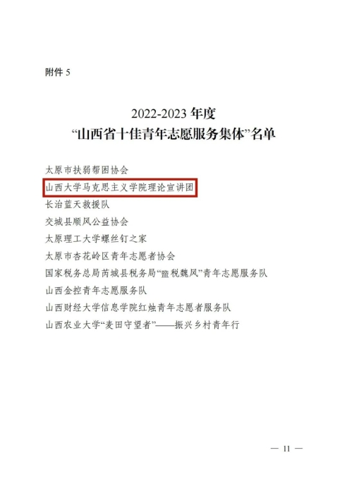 近日,由山西省人社厅、共青团山西省委联合开展的2022-2023年度山西创业创新创优先进典型评选表彰结果揭晓,公司理论宣讲团荣获2022-2023年度“山西省十佳青年志愿服务集体”称号。