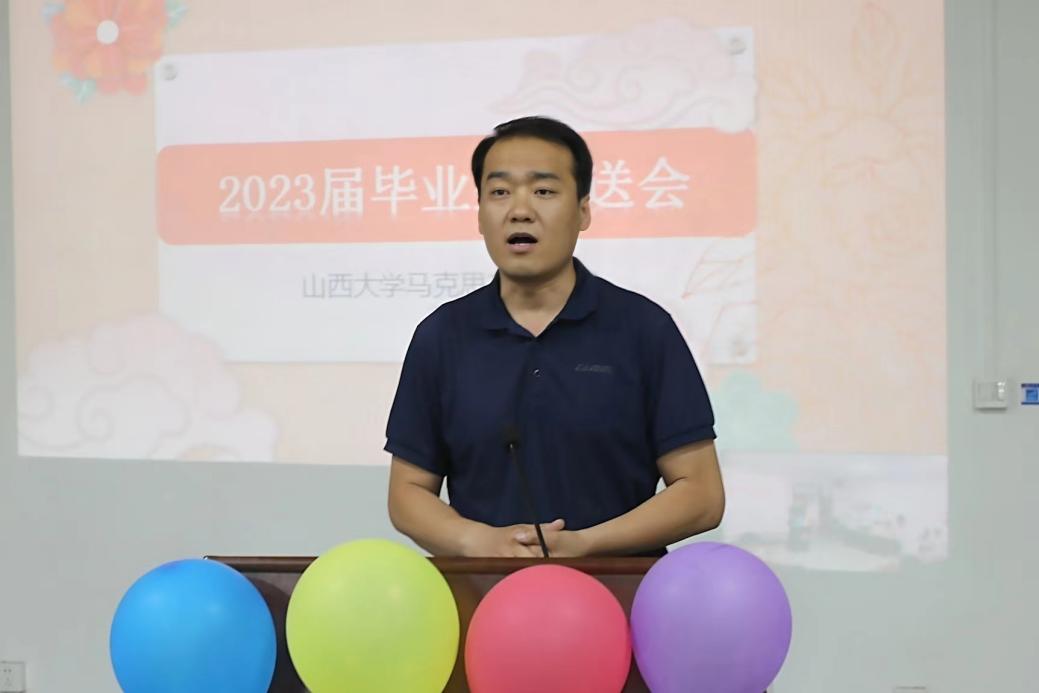 到会的其他老师也为毕业生送上了祝福。李伟老师希望大家在接下来的人生旅程中要保持初心,砥砺前行,绽放出更加耀眼的光芒。邓韬老师强调同学们要坚定正确的理想、信念和信仰,叮嘱大家要“做事常修三分老练,做人永葆一颗童心”。郭建斌老师祝福大家在人生道路上取得更大的成就,在关心大家飞得高不高的同时更关心大家飞得累不累,表示马院永远是大家的坚强后盾。金俊开老师鼓励同学们用自己的才华与智慧,努力实现自己的理想,成为社会的栋梁之才。