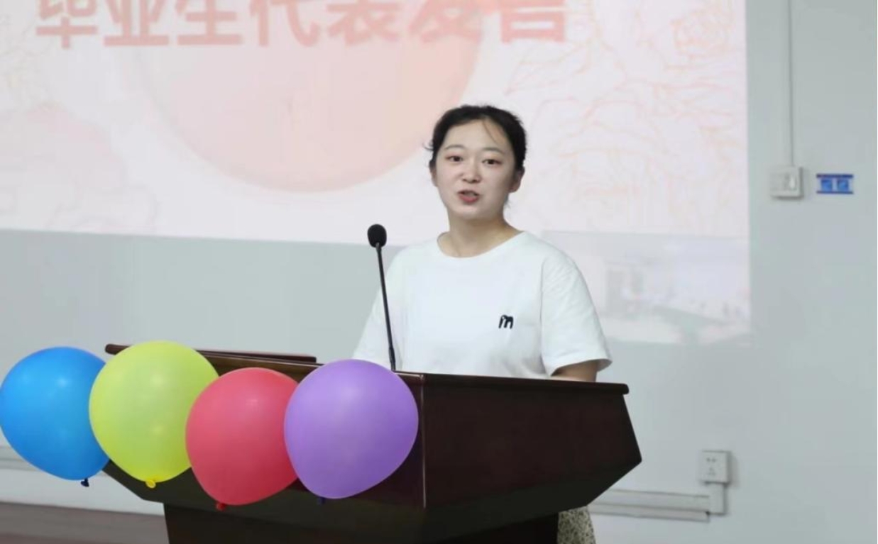 硕士毕业生代表卫敏分享了自己在yl23411永利官网求学过程中的成长与收获,并以自身经历鼓励学弟学妹们要珍惜青春、努力学习。她表示,公司的关怀与爱护和老师们的悉心教诲令自己受益颇多,自己会始终牢记职责与使命,在未来的岗位上发光发亮,争做一名会学、能写、善讲的马克思主义理论践行者,并对各位领导、老师和同学们送上了真挚的祝福。
