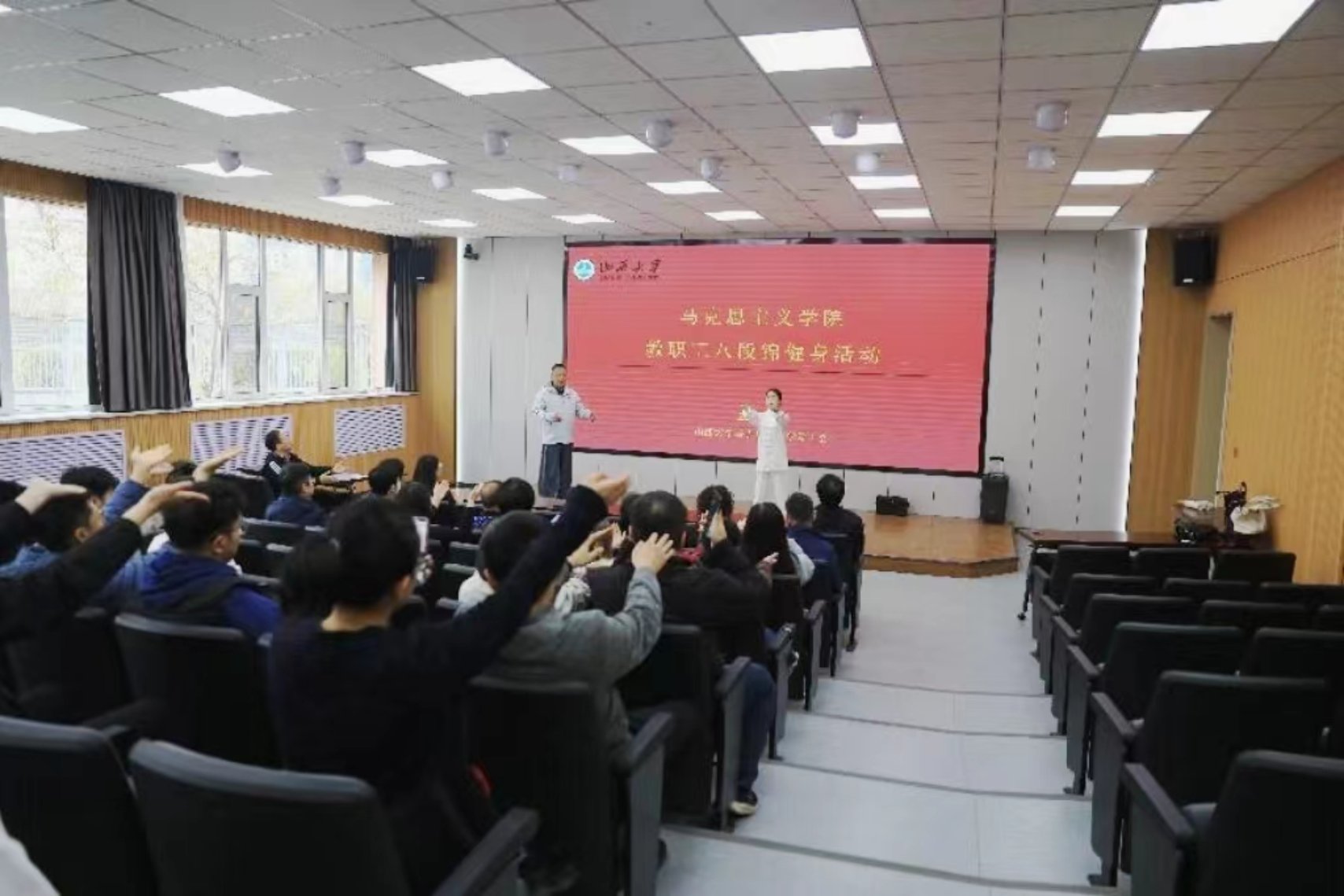 为弘扬中华优秀传统文化,提高教职工的科学健身意识与身心健康水平,4月2日,公司工会组织教职工举办学练八段锦健身活动。活动邀请体育公司刘映海教授团队全程进行示范讲解,公司30余名教师参加了活动。