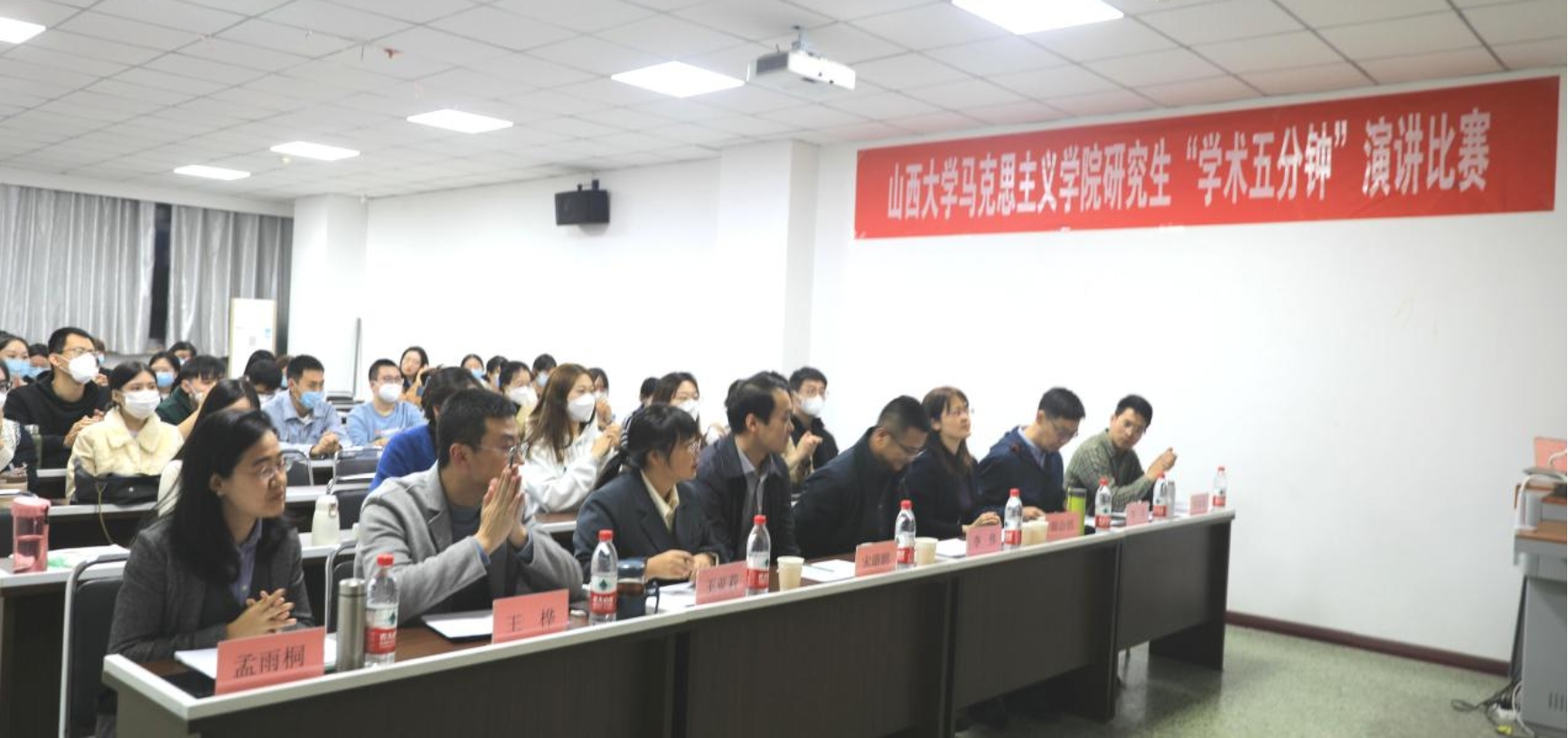 为营造善学乐学的良好氛围,展现马院研究生学术风采,用实际行动庆祝党的二十大胜利召开,10月19日,yl23411永利官网以线上线下相结合的形式举行第五届研究生“学术五分钟”演讲比赛。公司党委副书记宋璐鹏老师,经理助理王亚莉副教授,青年教师李伟副教授、姬会然副教授、李可副教授、郭建斌老师以及辅导员孟雨桐、王桦老师出席比赛并担任评委。2021、2022级全体研究生线上线下同步观看比赛。