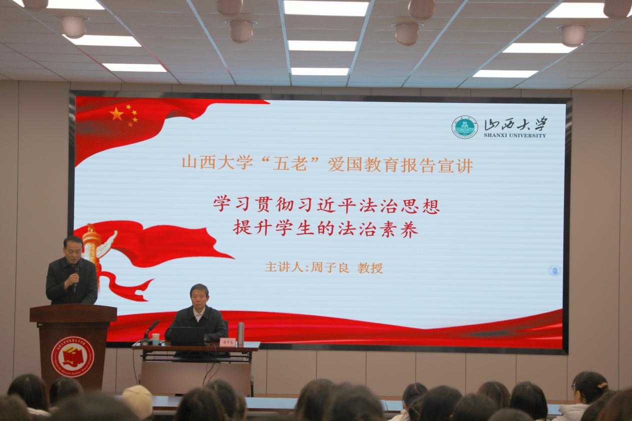 “五老”爱国教育报告宣讲是通过邀请老干部、老战士、老专家、老教师、老模范等“五老”人员,向青少年进行爱国主义教育的重要形式。本次宣讲会是一次生动的爱国主义教育课,也是一次深刻的法治教育课,同学们纷纷表示,作为新时代青年,要深入学习贯彻习近平法治思想,牢固树立法治观念,积极投身于全面依法治国的伟大实践,为实现中华民族伟大复兴的中国梦贡献自己的力量。