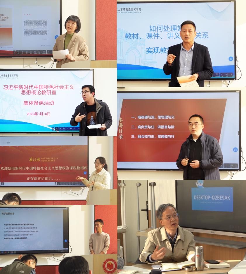 在集体研讨环节,与会教师围绕《参考讲义》的运用和课程教学方法的优化展开了热烈讨论。张培富老师指出,教师们要紧跟时代前沿,形成广博而深厚的知识储备,并将知识转化为实际行动的指南,真正做到知行合一,使思政课堂摆脱枯燥乏味的理论说教,成为员工了解世界、洞察社会的鲜活窗口。其他教师也踊跃发言,从学好用好《参考讲义》、优化教学内容、理论联系实际等多个角度谈感受,讲体会,说思考,建言献策。大家一致认为,《参考讲义》将抽象的马克思主义理论与生动的现实问题相结合,运用多样化的教学方法引导员工理解和思考问题,习近平新时代中国特色社会主义思想概论课程不仅是知识传授,更是思想引领,要充分发挥讲义的参考作用,结合自身的教学经验和员工的实际情况,不断创新教学方法,提升教学质量。现场气氛热烈有序,充分体现了教研室浓厚的教研氛围和教师们高度的责任感。