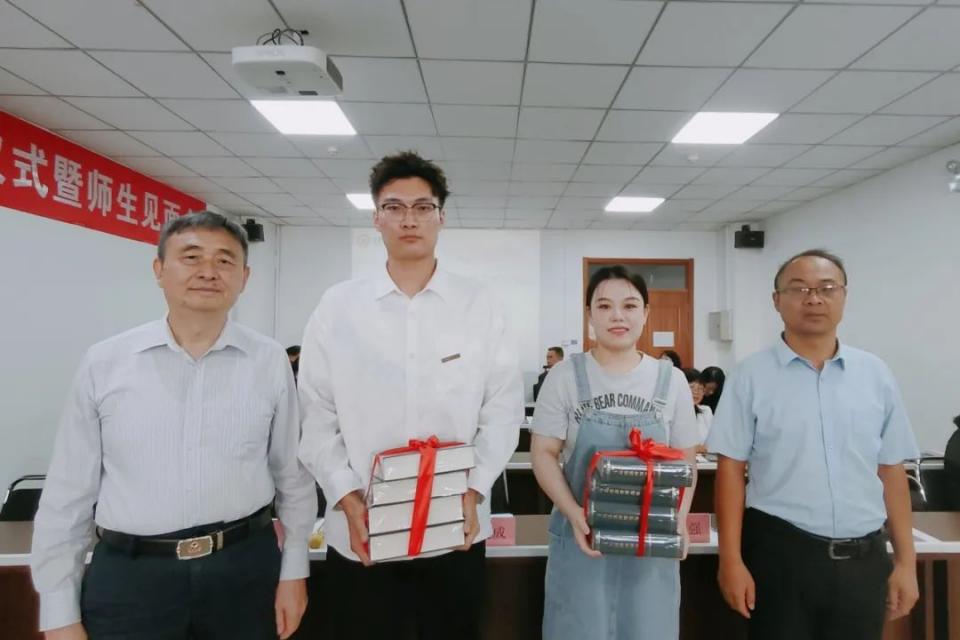 为鼓励新生积极阅读经典、学习原著,公司为2023级新生订购了《马克思恩格斯选集》,任定成经理和谢忠强副经理向新生代表赠书。