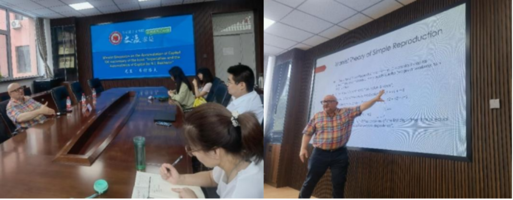在以“Marxist Discussion on the Accumulation of Capital:100 anniversary of the book ‘Imperialism and the Accumulation of Capital’”为题的学术讲座中,韦谢洛夫从布哈林《帝国主义与资本积累》一书的撰写动因切入,详细介绍了20世纪初列宁、布哈林与俄国“合法马克思主义者”图甘-巴拉诺夫斯基和斯特鲁威、德国社会民主党人罗莎·卢森堡等人之间关于经济发展的争论,重点阐述了布哈林关于马克思简单再生产理论、扩大再生产与资本积累、生产与消费的平衡、不均衡的经济增长与社会矛盾等问题的观点,通过比较布哈林与罗莎·卢森堡、凯恩斯的观点,重估了布哈林马克思主义政治经济学理论在苏俄马克思主义发展史中的历史意义。韦谢洛夫同现场师生展开了深入的交流与讨论,回答了参会人员提出的问题。