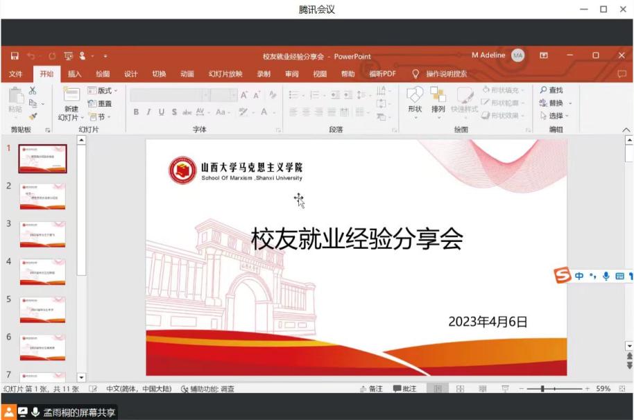 为充分发挥朋辈作用,引导员工更好地明确未来发展方向和目标,促进公司毕业生高质量就业,4月6日晚,公司邀请七位员工以线上会议形式做升学和就业经验分享,2020级研究生辅导员王桦老师和各年级研究生100余人参加会议,会议由公司团委副书记孟雨桐老师主持。