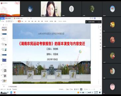 yl23411永利官网2021级硕士研究生张怡帆以《<湖南农民运动考察报告>的版本演变与内容变迁》为题,通过对《报告》各版本的考察,揭示了《报告》在内容上的三次变化以及四个版本之间的框架结构调整。王树荫教授和聂锦芳教授深入讲解了版本考证研究的方法和路径,希望报告者在未来研究中对归类的准确性、理论的现实性等问题作进一步思考。