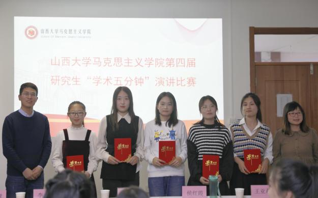 为了营造良好的学术氛围,展示马院学子学术风采,10月20日,公司第四届研究生“学术五分钟”演讲比赛在公司一教室举行。公司党委副书记宋璐鹏,思想政治教育教研室主任侯红霞,中国近现代史基本问题研究教研室主任王亚莉,实践教学教研室主任李伟,马克思主义基本原理教研室副主任、2021级研究生辅导员郭建斌,公司团委副书记、2019级研究生辅导员孟雨桐,公司党政办副主任、2020级研究生辅导员王桦等老师应邀出席此次活动并担任评委。2020级、2021级硕士研究生观看了此次比赛。