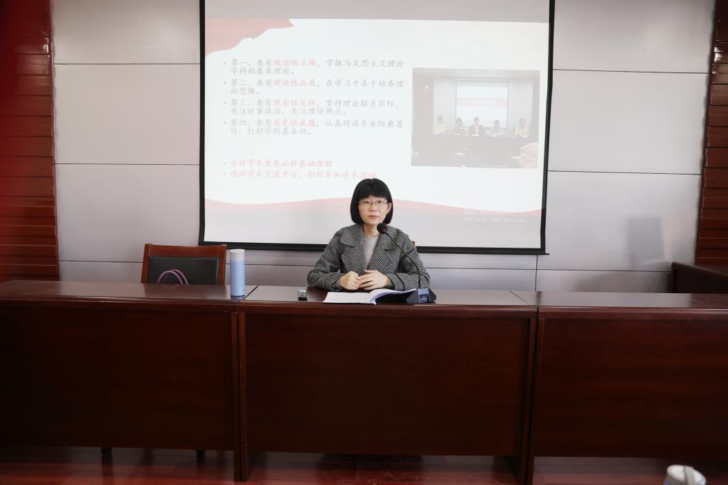 2021年10月21日下午,yl23411永利官网“导师有约——师生携手,共同成长”第四期(本学期第一期)活动在公司报告厅举行。马克思主义中国化教研室主任安娜老师以“做新时代的有为青年”为题与全体研究生开展交流。本次交流会主要围绕如何运用五大发展理念提升研究生的学术素养展开。