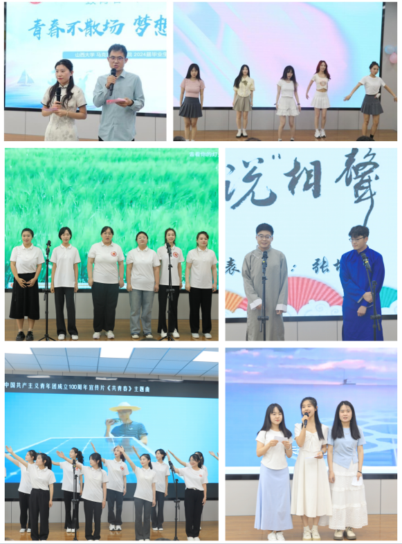欢送会上,同学们通过节目为毕业生送上祝福。2023级硕士生陈佳慧等同学合唱《风吹麦浪》,愿大家将毕业的喜悦洋溢在金黄的麦田中;张培科和刘力纲同学表演相声《穷人家的孩子》,幽默风趣、笑点不断;李博玮、赵欢欢等同学合唱《亲爱的旅人啊》,表达了对毕业学长的美好祝愿;2022级和2023级硕士生代表合唱《有我》,希望学长学姐们以青春之梦赴万丈理想。毕业班任碧玥和申思淼同学表演的舞蹈《翩翩》,让大家赏心悦目;邢云婕等同学合唱歌曲《再见》,歌声中诉说着对校园的留恋和对未来的期待。