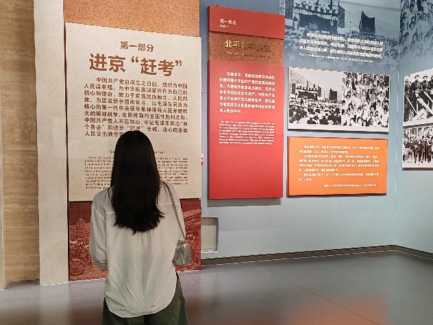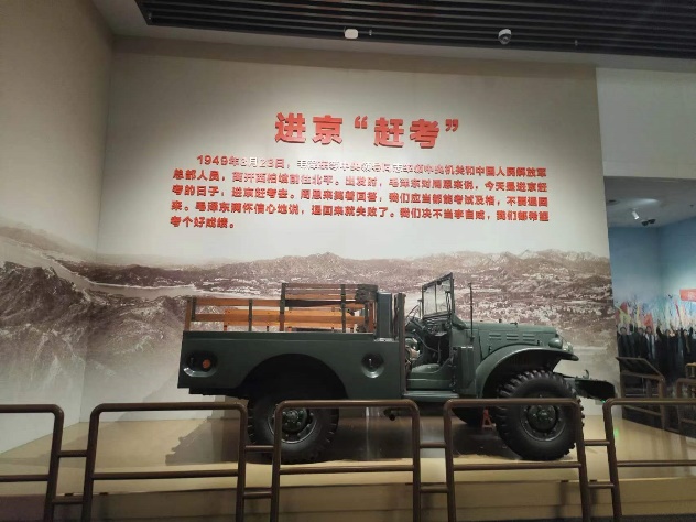 香山革命纪念馆是中国共产党领导解放战争走向全国胜利、新民主主义革命取得伟大胜利的总指挥部,也是中国共产党人“进京赶考”的首站,同学们在这里看到了斑驳的纪念章奖章、渡江战役期间使用的木船、西苑阅兵时毛泽东乘坐的同型吉普车、被关押在狱中共产党人绣制的五星红旗、国旗图案原稿、开国大典上使用过的“九头鸟”喇叭……一件件历史文物、一幅幅珍贵照片、一幕幕黑白影像,全面呈现了中共中央在北京香山时期波澜壮阔的革命历史,把同学们带回那段惊心动魄、激荡人心的岁月。让同学们深刻体会到了前仆后继、代代相传,永不磨灭的火苗,叫作传承。