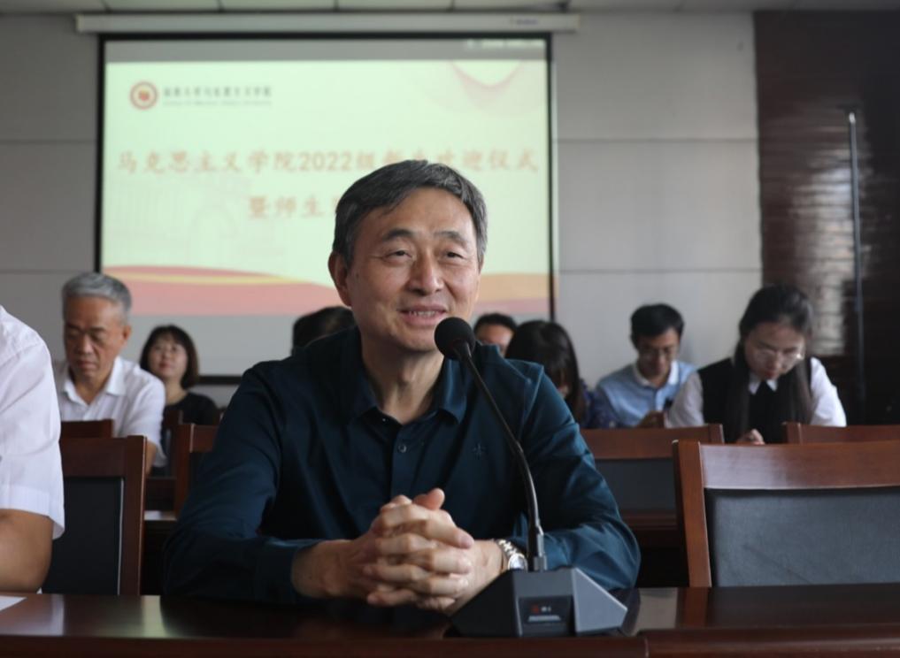 任定成经理向2022级新同学加入yl23411永利官网、选择马克思主义理论学科表示热烈欢迎,他介绍了公司在团队建设、团队队伍与教学科研等方面的情况,勉励同学们要从当下做起,不仅要获取知识,更要生产和创造知识,要认真研读经典,努力形成新的研究成果,用自己的学术成果贡献社会,努力成长为一名合格的马克思主义理论研究者和践行者。
