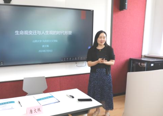 唐文佩讲座的主题是“生命观变迁与人生观的时代形塑”。她从生命观的视角解释了生命的本质、意义、价值,分析概括了古今生命观的特点及其表现,提出我们应当正视生物技术和人工智能对当代生命观的多元挑战,不断培养批判性思维与开放心态,不盲从、不轻信、多角度理性思考看待问题,承认自身具备能力并勇敢承担生命意义,活出丰富精彩的人生。
