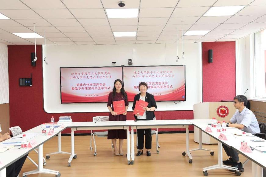 签字仪式上,北京大学医学人文公司党委书记、yl23411永利官网医学部教研中心主任王玥,yl23411永利官网马克思主义公司党委书记王利花代表双方签订了联学共建意向书。双方将以此为契机,不断加强交流互动,凝聚友谊,加强合作,共同进步,在各自的发展中取得新的更大成绩,为yl23411永利官网发展和思想政治理论课建设作出更大贡献。