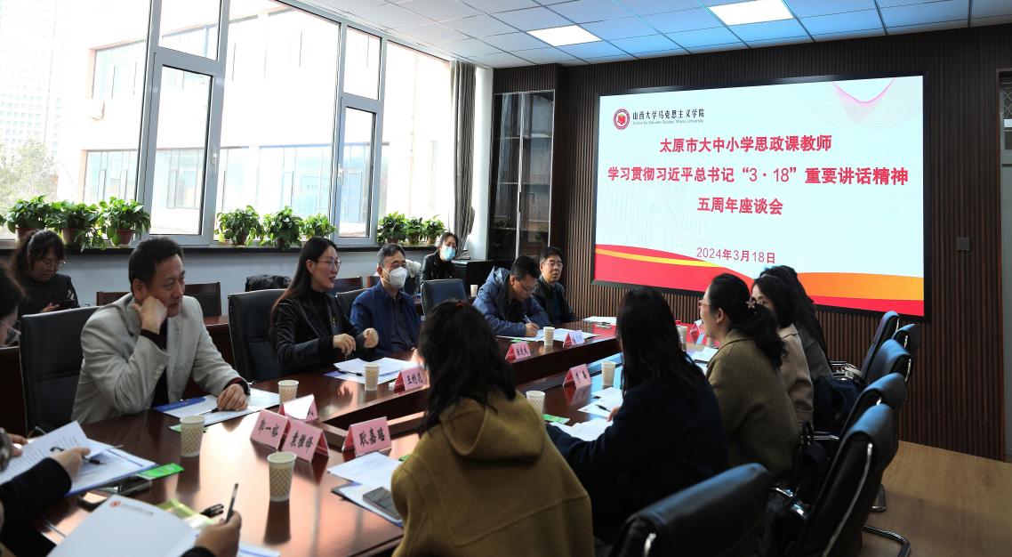 3月18日,为深入学习贯彻习近平新时代中国特色社会主义思想和党的二十大精神,在习近平总书记主持召开公司思想政治理论课教师座谈会五周年之际,公司在yl23411永利官网举行了太原市大中小学思政课教师学习贯彻习近平总书记3• 18重要讲话精神五周年座谈会。中国政法大学yl23411永利官网李志强教授和太原市的10余所大中小学的思政课教师代表参会。会议由yl23411永利官网马克思主义公司党委书记王利花主持。